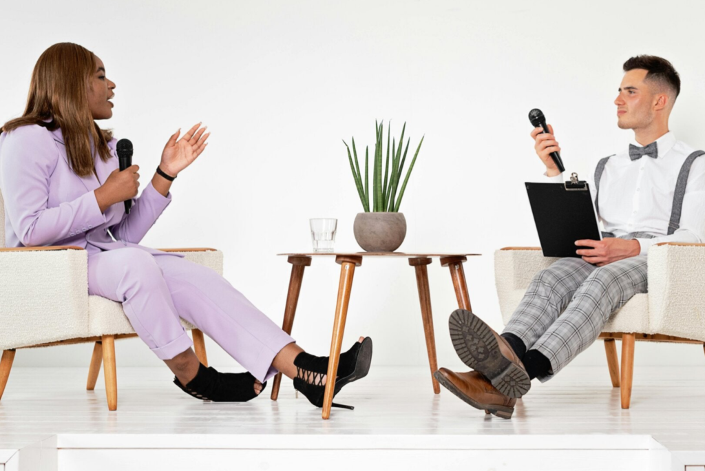 Have you got something to say? Then take advantage of my offer to create an interview or statement. It’s up to you whether you want to sit or stand, what background you choose, and whether you want one or two people in the scene. This is how you can inform your audience about news, clarify facts, and show your presence.